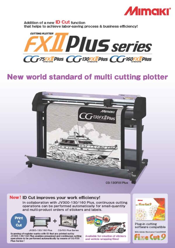 The CG-FXII Plus introduces its new ID Cut function to vastly improve work efficiency. In collaboration with the JV300-160 Plus, continuous cutting operations can be performed automatically for small-quantity and multi-product orders of stickers and labels. It enables an entire operation to be completed in a single specification of data so that operators can proceed with other jobs simultaneously.